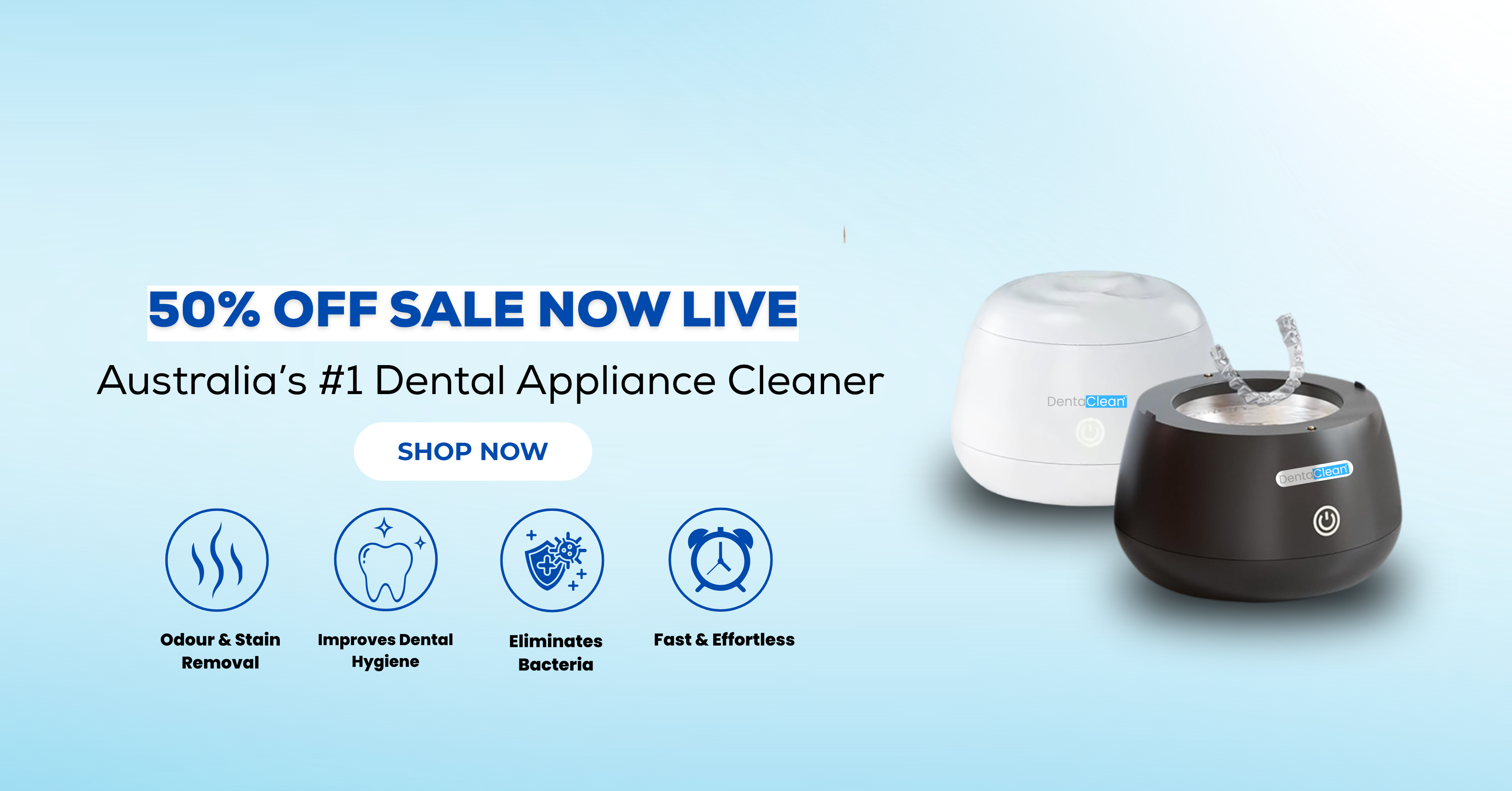 Our ultrasonic cleaner uses high-frequency sound waves to create microscopic bubbles that gently yet thoroughly clean retainers, mouthguards, and dentures. These bubbles penetrate hard-to-reach areas that brushing can’t, removing bacteria, plaque, and odour-causing buildup without causing damage. In just minutes, your dental appliance is left hygienically clean, supporting better oral health, fresher breath, and a longer lifespan for the products you wear every day — all with effortless, push-button simplicity.