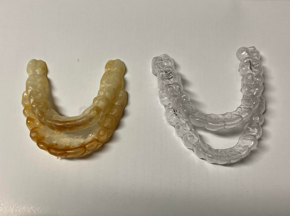 The cleaner is suitable for retainers, clear aligners, mouthguards, dentures, and other removable dental appliances.